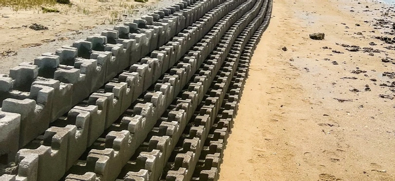 Oyster castles are modified concrete blocks that become living reefs as oyster larvae attach to them and grow. They reduce the impacts of future storms, provide habitat for wildlife and improve water quality.